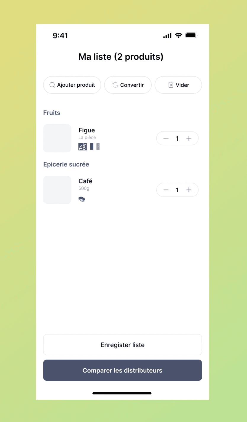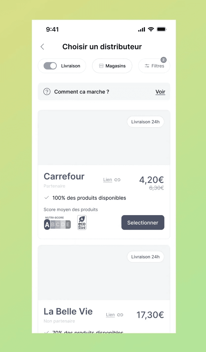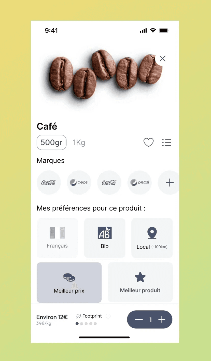 Pensée pour évoluer en continu, l’application s’adapte aux retours des utilisateurs et intègre régulièrement de nouvelles fonctionnalités afin d’améliorer l’expérience d’achat : scan de tickets de caisse, calendrier antigaspi, panier promotionnel, assistant IA, etc. Une attention particulière a été portée à l’UX afin de permettre des courses rapides et efficaces, avec l’essentiel accessible en un coup d’œil grâce à une interface minimaliste et colorée.